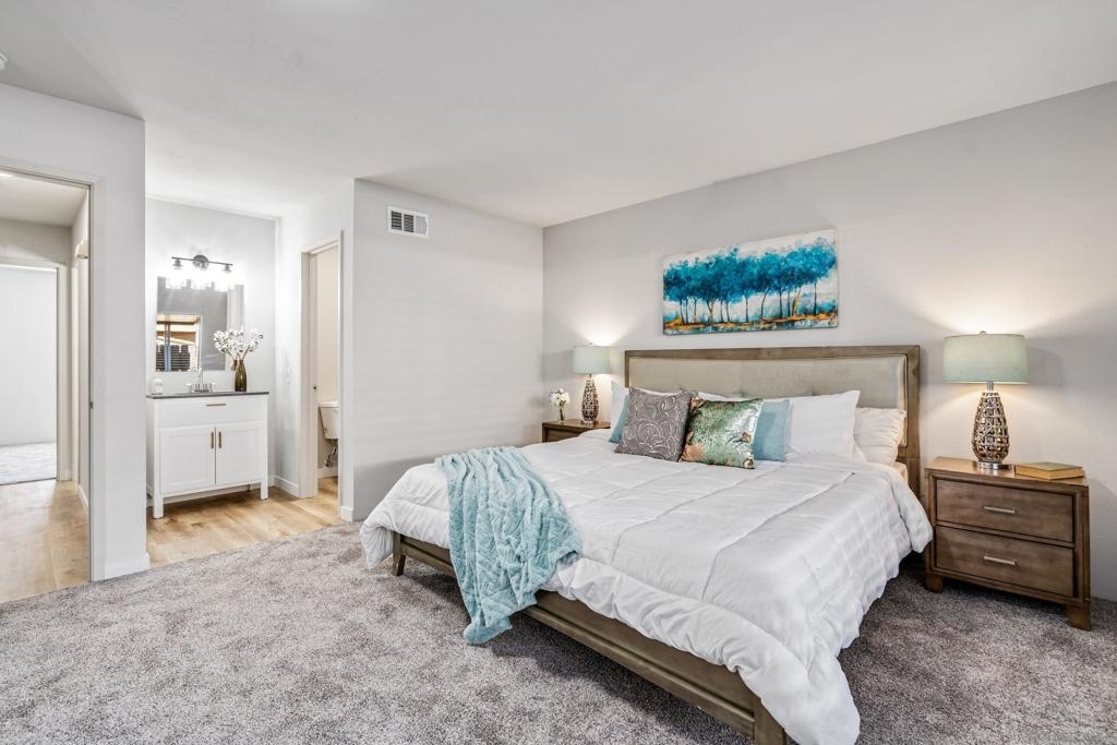 Beautiful Green Garden community single level 2 bed 1.75 bath condominium 1,116 square feet features new LVT flooring, new carpet, new kitchen with granite counter tops and soft close cabinets/drawers, new appliances, new paint, new bathroom vanities and new primary bedroom shower. Home has patio great for entertaining. There is an assigned carport parking spot and community swimming pool. Call this home today!