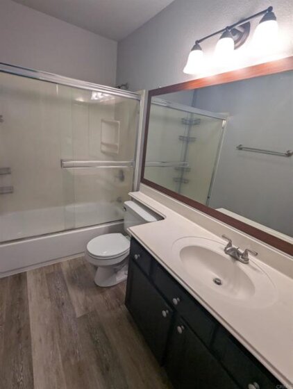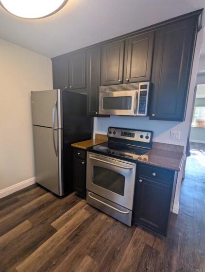 BACK ON THE MARKET!! BUYER COULD NOT PERFORM... Discover this hidden gem in the The Village Townhomes community. This exceptional end unit is located in a gated community, and only has one shared wall. Features include vinyl plank flooring in the living room, kitchen, dining and half bathroom on the main floor. The upstairs hallway and bedrooms are carpeted, for added comfort. Kitchen has stainless steel appliances, including a refrigerator, electric stove, microwave and dishwasher for easy cooking and clean-up. Two large bedrooms upstairs with the front bedroom offering a view of the courtyard and picnic area from the balcony. Convenient laundry with full size washer and dryer in unit. Sliding door in dining room opens up to a large, private fenced back patio, ideal for entertaining guests. Complex features a pool, exercise room, picnic area, and 1-assigned, covered parking space for peace of mind after a long day. Centrally located near shopping, dining, and freeway access and public transportation. Don't miss out on the opportunity to call this great townhouse your next home!
