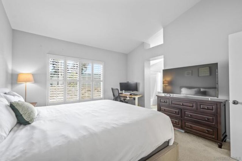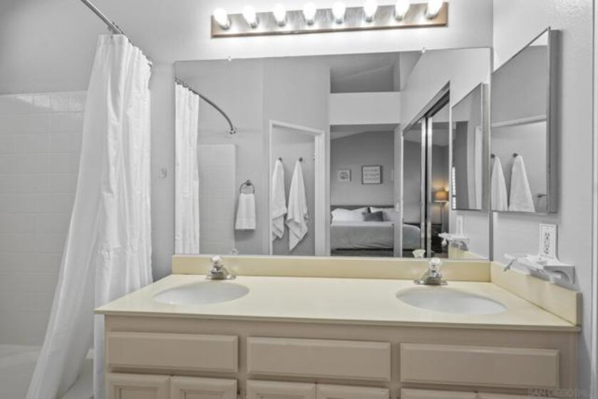 Welcome to 11378 Via Rancho San Diego #C — a beautiful townhome in the VA- and FHA-approved Tristan community, located in the heart of Rancho San Diego. This inviting **2-bedroom, 2.5-bath** home features an open floor plan with stylish vinyl plank flooring throughout the main living areas. The spacious living room flows seamlessly to a private patio - perfect for relaxing or entertaining. The kitchen, complete with an eat-in area and a full wall of pantry cabinets, opens to the dining area, creating an ideal layout for everyday living. Upstairs, both bedrooms offer **en-suite bathrooms** for added comfort and privacy. Additional highlights include elegant shutters, **central A/C**, in-unit laundry, and a **1-car attached garage** with additional parking. Nestled in a quiet interior location, just steps from the community pool and spa. Conveniently situated near shopping, dining, and top-rated schools, this home offers the perfect blend of comfort, style, and location - truly a wonderful place to call home!