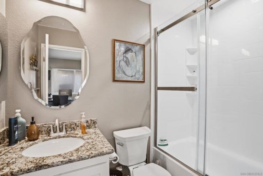 Welcome to 11382 Via Rancho San Diego #C, a beautifully upgraded 2 bed, 2.5 bath condo offering 1,258 square feet of modern living in the heart of Rancho San Diego. Every inch of this two story home has been thoughtfully enhanced and carefully maintained. The remodeled kitchen features updated cabinets, granite countertops, stainless steel appliances, and a reverse osmosis drinking system. The same granite surfaces continue through the fireplace mantle and both bathrooms, creating a seamless and high end finish throughout the home. The spacious living area showcases a custom wood accent wall, opening to a private patio perfect for entertaining or relaxing. Upstairs, two ensuite bedrooms offer comfort and privacy, each with a custom built closet and fully renovated bathrooms. The primary suite is a true retreat with a dual vanity bath, walk in shower, and generous walk in closet. Additional highlights include a smart thermostat that can be controlled from your phone, recessed lighting, an updated half bath, and a full size laundry room with extra storage. The attached garage includes custom shelving, a paid off whole home water filtration system, and a water conditioning system that together provide exceptional water quality throughout the home. Located in the highly sought after Rancho San Diego community, this move in ready condo is walking distance to shopping, parks, and dining, just minutes from top rated schools, Highway 94, the airport, and San Diego’s beautiful beaches.