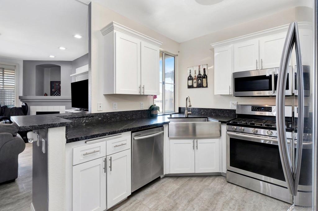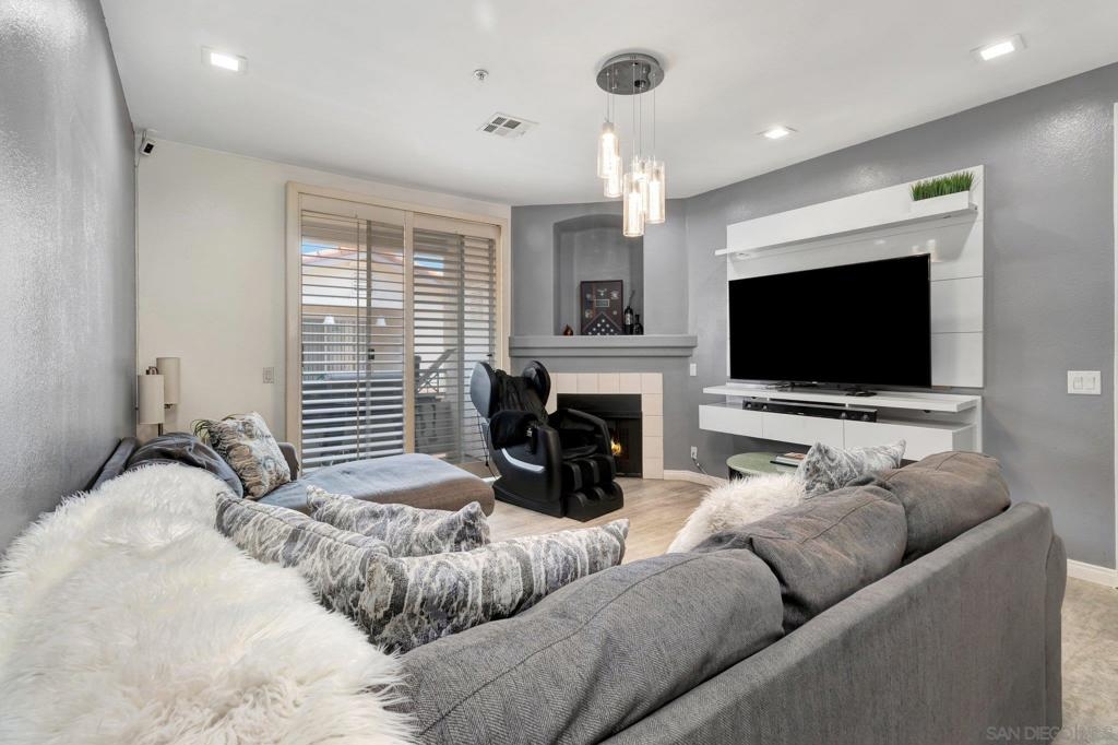 Rarely available 3 bedroom second floor unit, remodeled kitchen, stainless steel appliances, remodeled bath (master). Newer appliances in kitchen, with built in microwave. Gas fireplace in living room, with balcony off the living area with plantation shutter. Nice sized bedrooms. Remodeled master bath is spacious and has private toilet area and double sink vanity. Kitchen and bathroom have neutral floors and quality fixtures. Neutral interior finish. Located at back of complex. Walk to shops and stores nearby. Easy access to commute.