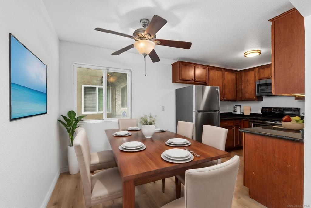 Nestled in a secure, gated community, this condo offers a blend of comfort and convenience in the heart of El Cajon. Remodeled interior featuring two bedrooms with large closets, one full bathroom, kitchen, dining, and living areas with new LVP floors, paint, and finishes throughout. It also boasts dual-paned windows and enclosed patio off of living room with grill/smoker included. Washer and dryer stacked in one of two hallway closets. This upgraded home is ready for a new owner and won't last long!
