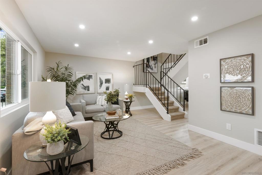 1204 Denver Lane Unit H is a fully updated 3-bedroom, 2-bathroom townhome located in a quiet, well-maintained community in El Cajon. This move-in-ready home features a functional layout and quality upgrades throughout. Interior highlights include new luxury vinyl plank flooring, freshly painted walls in a modern, neutral tone, and a fully renovated kitchen with brand-new cabinetry, updated countertops, stainless steel appliances, and a deep single-basin sink. All three bedrooms are upstairs, each with ceiling fans and updated finishes. Both bathrooms have been remodeled with new vanities, mirrors, lighting, and fixtures. Additional improvements include dual-pane windows, a new electrical panel, upgraded interior doors and hardware, and a dedicated in-unit laundry area. The private outdoor patio offers additional living space, and residents enjoy access to a community pool. The HOA covers water, sewer, trash, and common area maintenance. Centrally located near schools, shopping, and freeway access, this turnkey home is ideal for buyers seeking a low-maintenance property in East County.