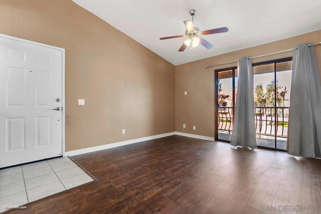 2 Bedroom, 2 Bath upstairs unit with vaulted ceilings and 2 assigned parking spaces in Villa Montevina. 1 covered space and 1 uncovered located close to the unit. Kitchen has granite countertops, stainless steel appliances and ample storage cabinets with pantry. Wood like flooring throughout. Mirrored closets in bedrooms. Full sized laundry hookups in hallway. Spacious balcony. Community features Pool, spa, tennis and racquet ball courts, fitness center, clubhouse and sauna. HOA covers water. This is a great unit within walking distance to Cuyamaca College, shopping and several dining options. Some photos are virtually staged. Don't miss this one!