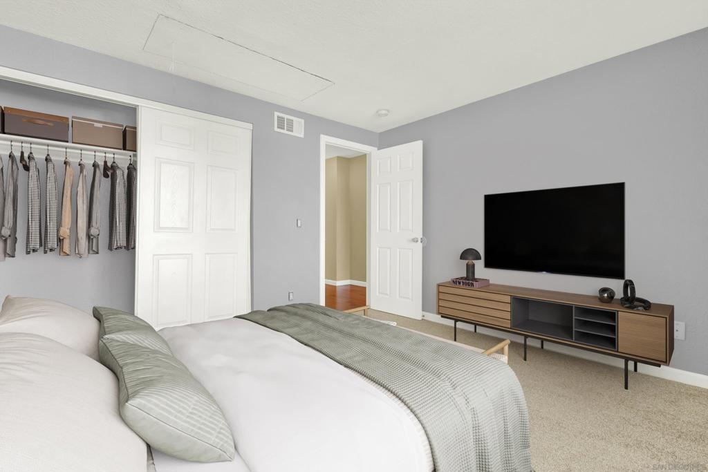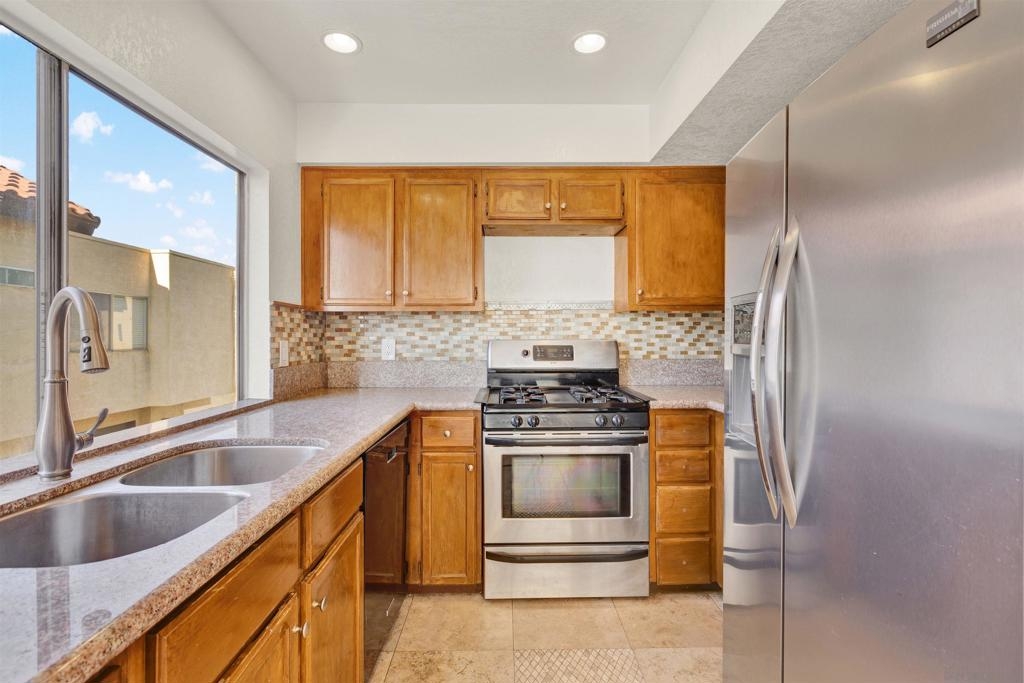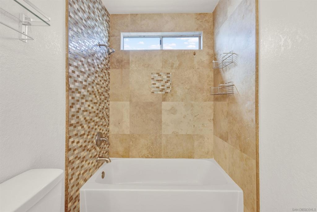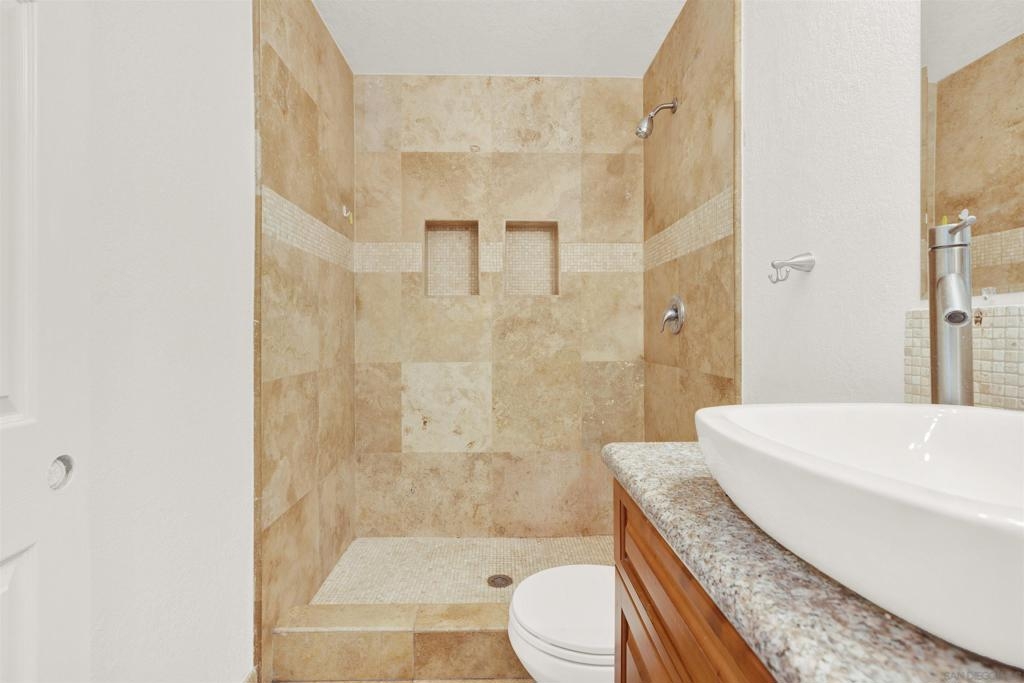 Embrace upscale living in the heart of El Cajon with this exquisite 2-bedroom, 2-bathroom condo. The elegant travertine entry leads to an updated interior featuring fresh paint and new carpeting. The chef's kitchen boasts granite countertops, stainless steel appliances, and a stylish tile backsplash. The master bedroom offers a large closet and a beautifully upgraded bathroom with travertine flooring and a tiled shower. The second bathroom is equally luxurious with quality vanities and basin sinks. Additional highlights include full-size laundry, a finished attic, and vaulted ceilings. Enjoy amenities such as a pool, tennis court, and optional RV space. Conveniently located near shopping, dining, and freeway access, this condo is the perfect place to call home.