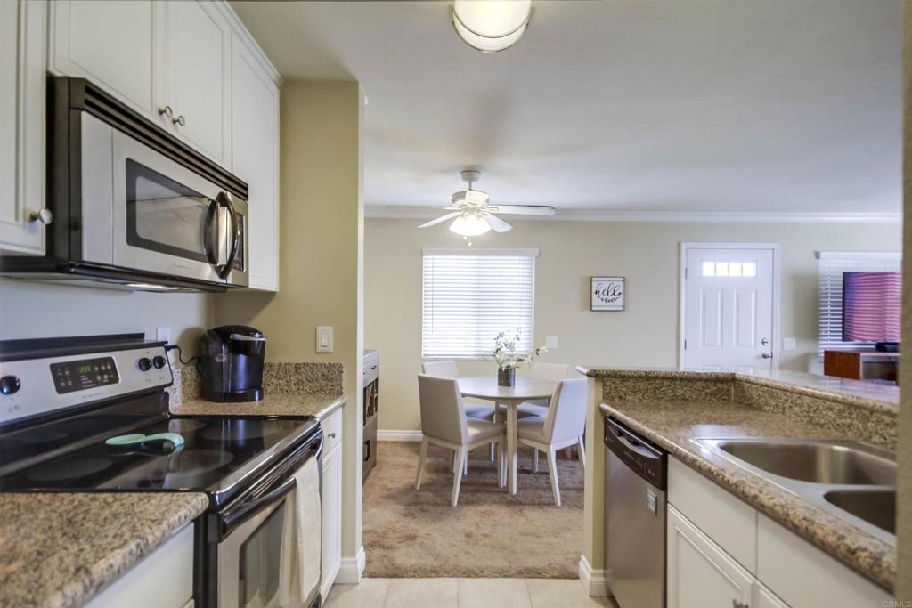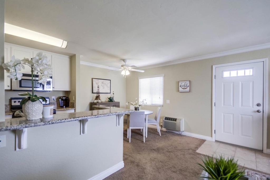 Move in ready with great upgrades in the finest gated community in El Cajon! This 1 bed, 1 bath, upstairs corner condo is a perfect place to call home. Upgrades include freshly painted cabinets, granite counters, brand new new tub/shower, crown moulding and newer vinyl dual pane windows PLUS it has IN UNIT LAUNDRY a storage room and covered front porch! This fantastic, fully gated community of Alder Woods Condominiums is conveniently located w/ easy access to 8, 67 & 52 freeways & close to shopping, dining & entertainment. The VA/FHA approved community features large recreation areas, well maintained landscaping, playgrounds, pool/spa, exercise room, clubhouse & dog walking area. HOA fee includes water, hot water, trash collection, gated community, building maintenance and more.
