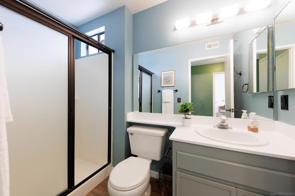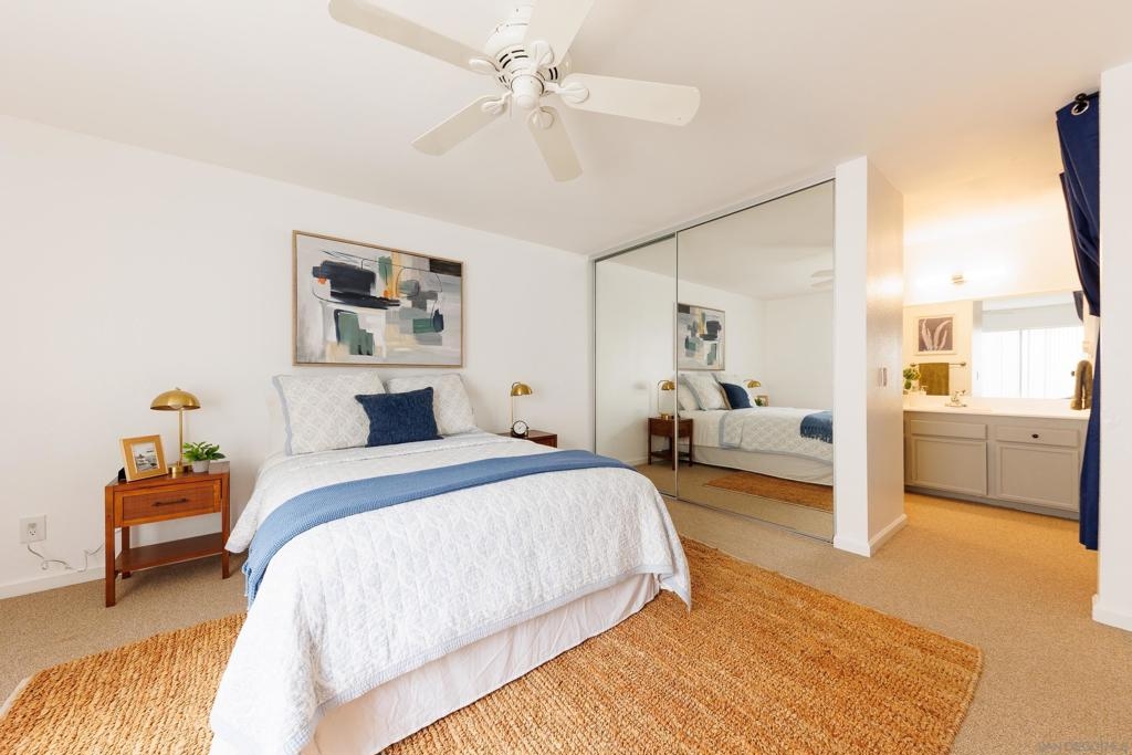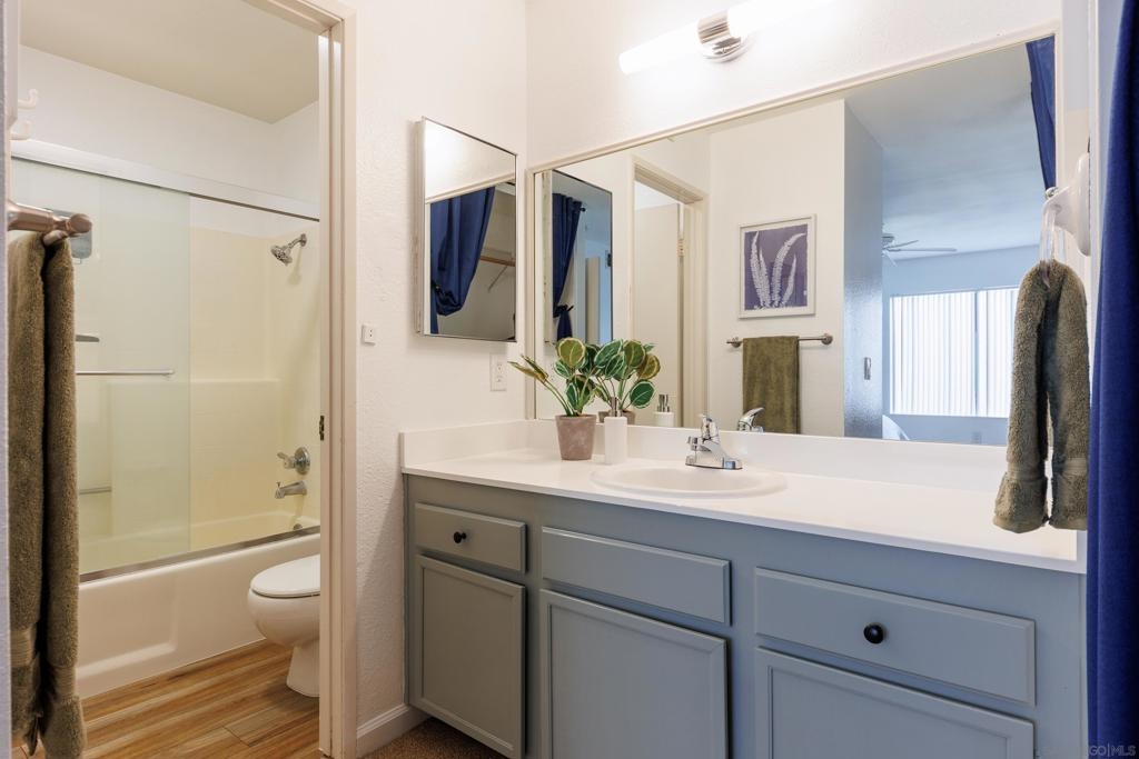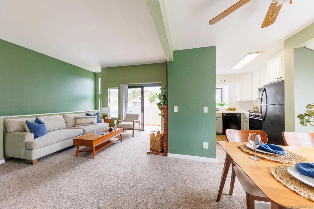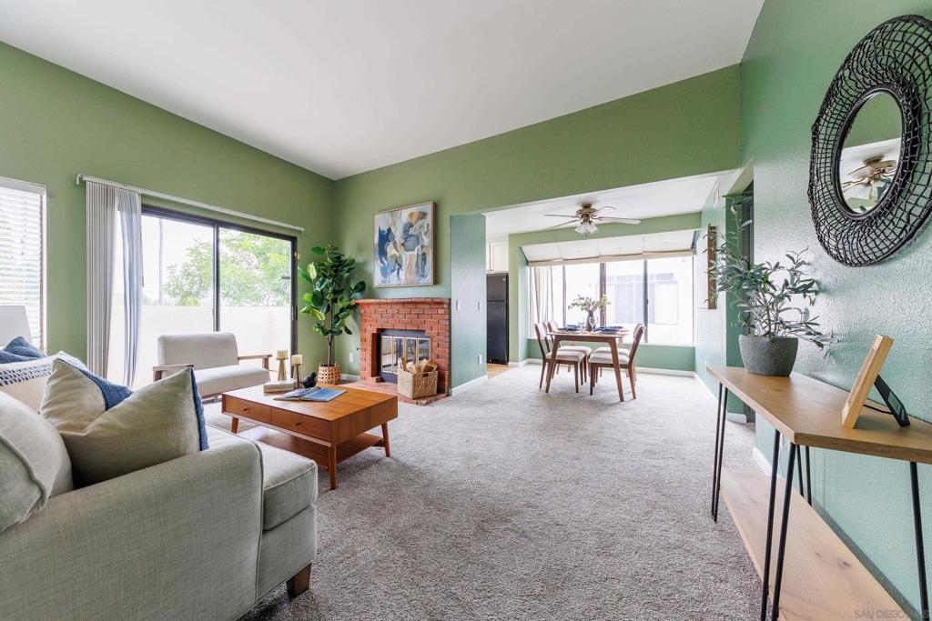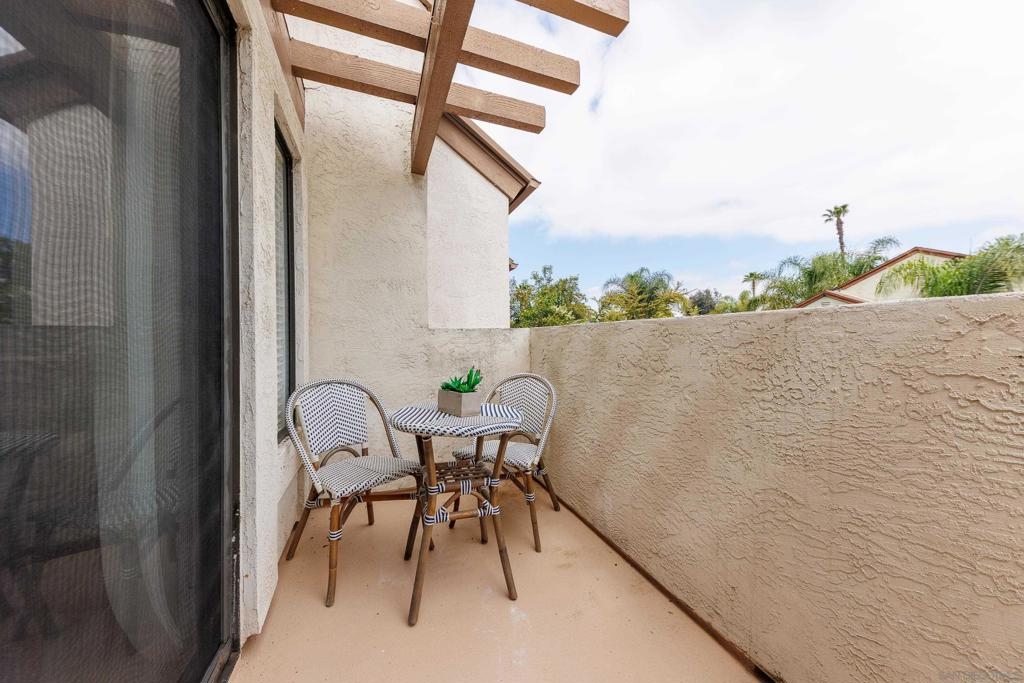 Welcome to Beacon Street Community located in Granite Hills! Step inside to discover a top floor, end unit condo over your attached 1-car garage with washer, dryer and storage space. The seller hired a contractor who scraped the popcorn ceilings, then painted the walls and cabinets throughout in neutral colors. In addition, a new heater was installed, and new flooring laid in the kitchen and primary bathroom. This home provides a great opportunity for your personal touch. This home includes a spacious primary bedroom, with ample closet space for all your storage needs, as well as an ensuite bathroom. Being an end unit there is natural light in all rooms. The private balcony, fireplace and high ceiling make this living room a great entertaining space. With an additional assigned parking spot and multiple guest spots, parking will never be an issue for you or your guests. This 2 bedroom, 2 bathroom, 1,087 sq ft residence is located within the peaceful Beacon Street community. With ample green space and walking paths, a pool and hot tub, this condo offers a sense of community. Conveniently situated near shopping, dining, and entertainment options, as well as easy access to major freeways, and 30 min from the beach or mountains, this home offers both convenience and charm. Don't miss your chance to make this condo your own slice of paradise in Granite Hills!