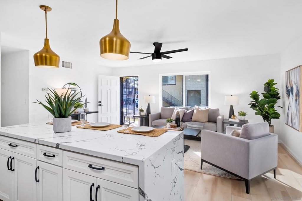 Beautifully updated 3 bedroom 1 bathroom end floor-unit. Bright open floor plan with new wide plank oak flooring throughout. The large open kitchen features a waterfall edged island countertop, new cabinets, a large farmhouse style sink overlooking your patio, stylish light fixtures, new stainless steel appliances, and recessed lighting. Newly updated bathroom. In-unit laundry. A private patio off your living room and kitchen to enjoy BBQing or indoor outdoor living space. The complex offers a pool and well maintained grounds. Close proximity to freeway access, shopping centers, hiking trails, and more! Equipment: Range/Oven Topography: LL