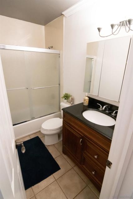 VA approved! Charming upstairs end unit condo with a bright, open floor plan and mountain views from the living area and private patio. This 2 bedroom, 1 bath home features laminate flooring in the living, dining, and hallway, a kitchen with dishwasher and built in microwave, and a full-size washer and dryer inside the unit. Enjoy the convenience of a garage with storage plus an additional parking space behind the garage. The community offers a sparkling pool and lush, mature landscaping throughout. Great location with easy access to shopping, dining, and freeways!