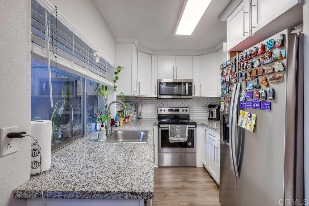 Remodeled 3 bed townhome in the Pepper Drive Estates of El Cajon. All new wood flooring throughout downstairs, brand new cabinets, new stainless steel appliances, new slider door that leads out to private patio. Both bathrooms have been updated with new vanities, flooring & fixtures. Heater & AC are only a couple years old. Laundry closet on patio fits full washer & dryer. 1 attached garage space plus extra guest parking pass, community pool, close to 67 freeway & much more!