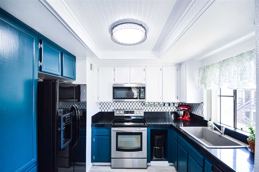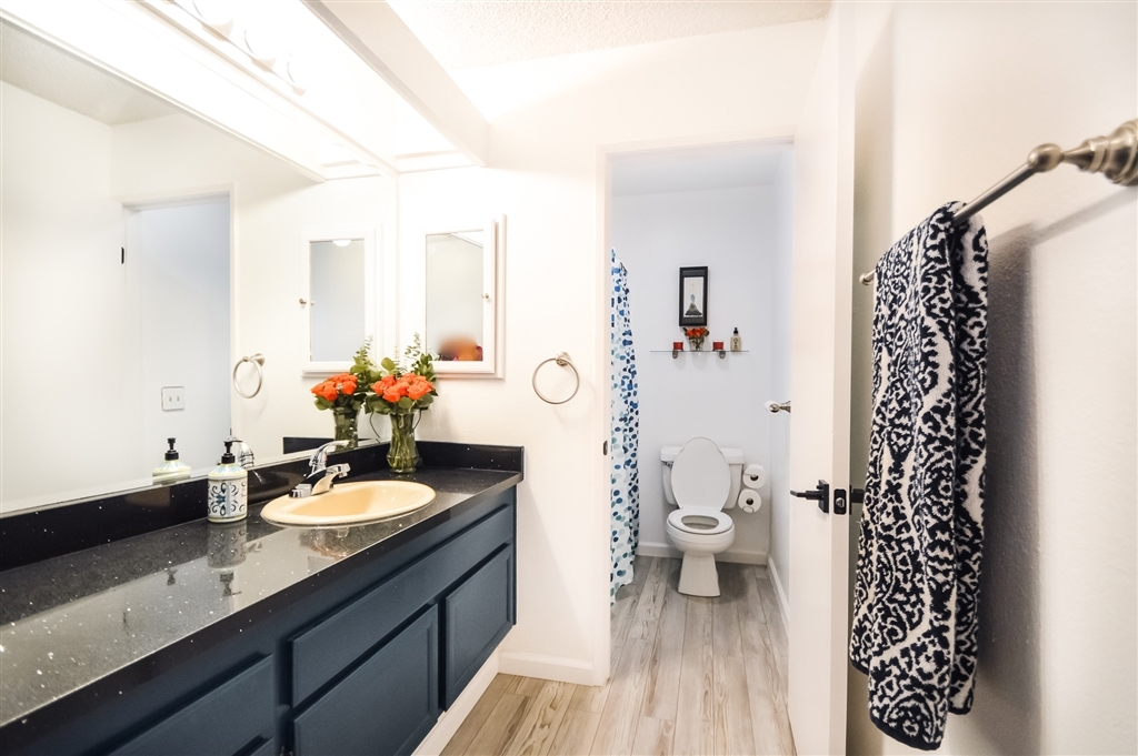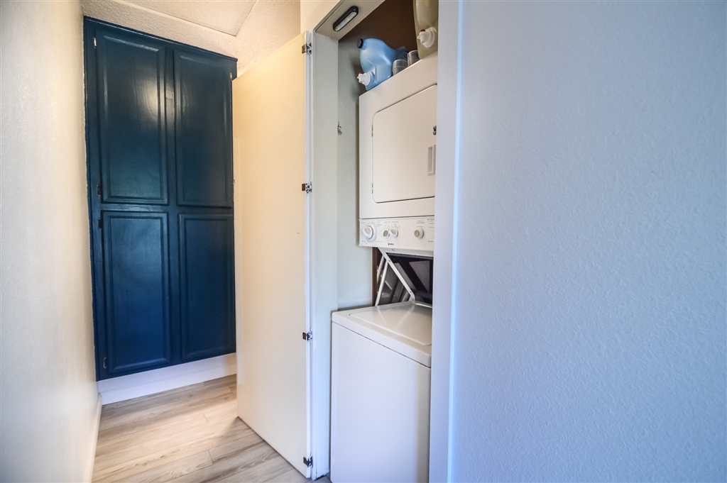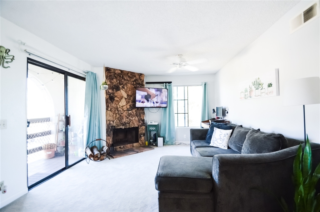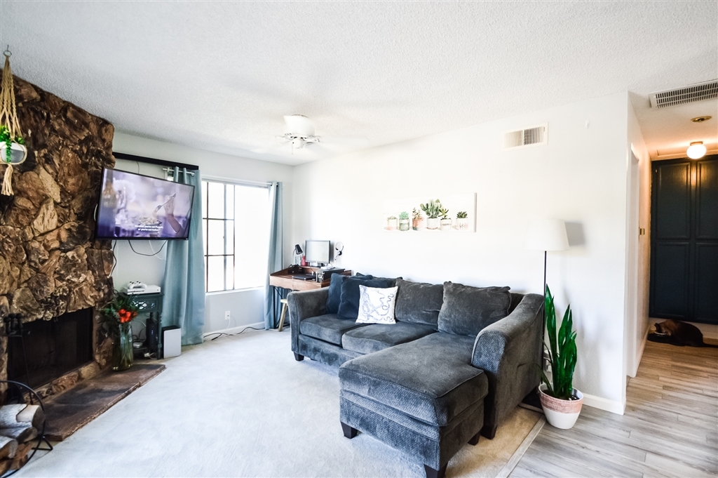 Beautifully updated condo with rarely included detached garage and parking space. Fresh paint throughout, new grey vinyl flooring, inside laundry closet, updated kitchen with lantern shape backsplash, sparkly black granite counter tops and new LED light fixture and shiplap ceiling, large bathroom vanity, wood burning fireplace, balcony off living room, lots of natural light through, central A/C, community pool/spa, bbq area, water and sewer included with HOA fees. This is a nicely maintained complex!. Neighborhoods: El Cajon Equipment: Dryer, Washer Other Fees: 0 Sewer: Sewer Connected Topography: LL