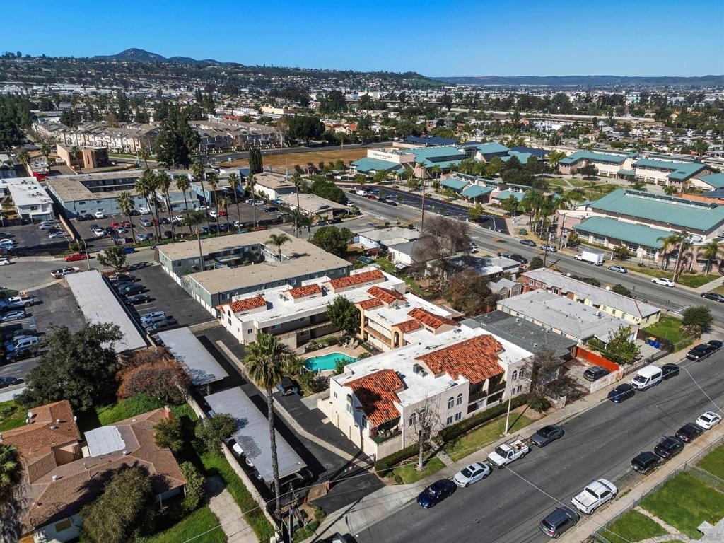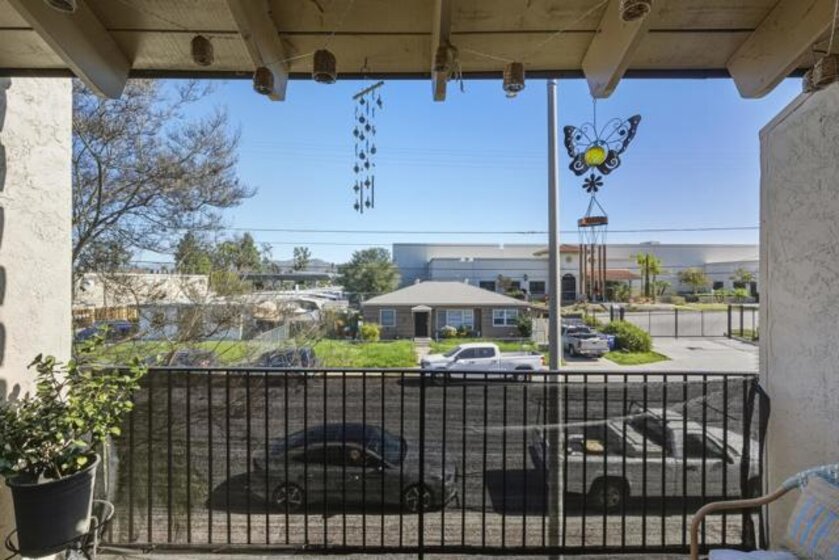 Welcome to a hidden oasis in the heart of El Cajon. This upstairs, single-level corner unit is tucked inside a private gated community and offers added privacy with its own nearby stair entry. Vaulted ceilings and abundant natural light create an open, airy feel throughout the home. The floor plan features two bedrooms and two full bathrooms, along with a well-appointed kitchen complete with stainless steel appliances, granite countertops, and refrigerator included. Enjoy indoor-outdoor living from the private balcony, plus the convenience of in-unit laundry, air conditioning, and ample storage. Parking is a breeze with one garage space, one assigned parking space, and plenty of street parking nearby. Residents enjoy access to a central courtyard pool and a prime location close to Parkway Plaza, major freeways, local parks, and walking distance to El Cajon Middle School. A rare opportunity to enjoy privacy, convenience, and community all in one.