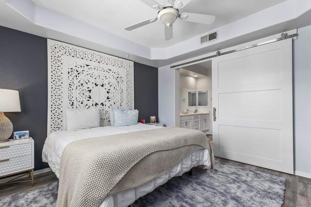 Welcome to this beautifully maintained 2-bedroom, 2-bathroom townhome with an added loft space—perfect for a home office, guest room, or creative studio—located in the desirable gated community of Fairway Villas. This unit has GOLF COURSE VIEWS of Singing Hills 10th hole! Step inside to a bright and airy open-concept layout featuring luxury vinyl plank and new carpet throughout. The updated kitchen is a chef’s delight, complete with a central island, tile countertops, stainless steel gas range, built-in microwave, and refrigerator. The spacious main floor consists of the living and dining areas that flow effortlessly and offer views, making entertaining a breeze. Upstairs, the versatile loft provides additional space to suit your lifestyle—ideal for working from home or relaxing in a cozy reading nook. The generous primary suite offers a walk-in closet, dual vanity sinks, and private toilet and shower room. Other features include huge walk-in closet on lower level, attached 1-car garage, and large laundry room.