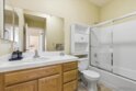Dehesa residence presents exceptional value in the prestigious, resort-style gated community of Fairway Villas. Offering space, scenic views, and everyday convenience, this home is perfectly positioned to capture stunning golf course vistas from the primary suite, guest suite, and main living areas. The spacious main level features soaring cathedral ceilings and opens to a private balcony overlooking the picturesque Singing Hills Golf Course, with sweeping views of pine trees, manicured fairways, and tranquil water features from nearly every window. The well-appointed kitchen includes a generous center island, ample cabinetry, and a dedicated dining area—ideal for both daily living and entertaining. Real wood shutters and an expansive 8-foot sliding door invite in refreshing breezes straight off the greens. The primary suite offers a large walk-in closet, dual sinks, a private water closet, and a full-size shower. Additional highlights include a dedicated laundry room with built-in cabinetry and hanging rack, plus a versatile lower-level space with an oversized walk-in closet currently configured as a home office. The attached garage provides extra storage with built-in shelving and wall hooks. Residents of Fairway Villas enjoy resort-style amenities including a sparkling pool, spa, and furnished patio areas—all within a gated, beautifully maintained setting. This is a rare opportunity to own a view property in Dehesa at an outstanding value.