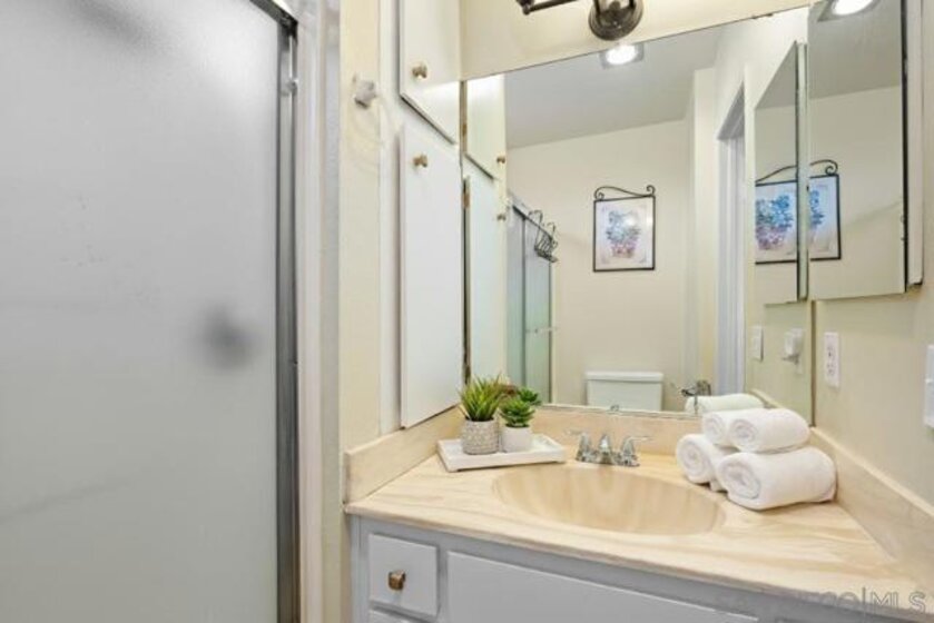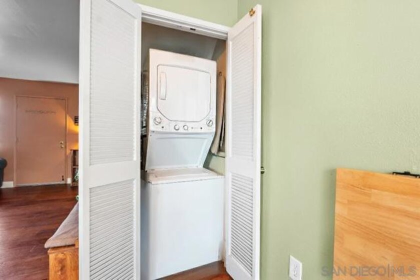 VA ASSUMABLE LOAN! Welcome to this inviting 2-bedroom, 1.5-bath condo offering 928 sq. ft. of comfortable living space. The kitchen includes ample cabinet space with easy access to the private patio — ideal for morning coffee or evening gatherings. Upstairs, you’ll find two spacious bedrooms and a full bath, providing plenty of room to unwind. TWO PARKING SPACES, one under carport with storage, IN-UNIT laundry, and close access to the community pool and spa for year-round relaxation. Located in a well-maintained community close to shopping, dining, and commuter routes, this home combines comfort and convenience in one great package. Perfect for first-time buyers or investors — don’t miss this one! *Virtual Staging* *Storage on patio to convey with property* Freshly painted (bedrooms & living room)