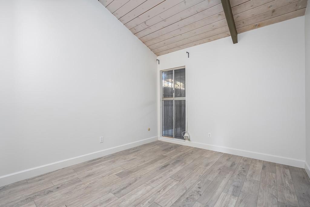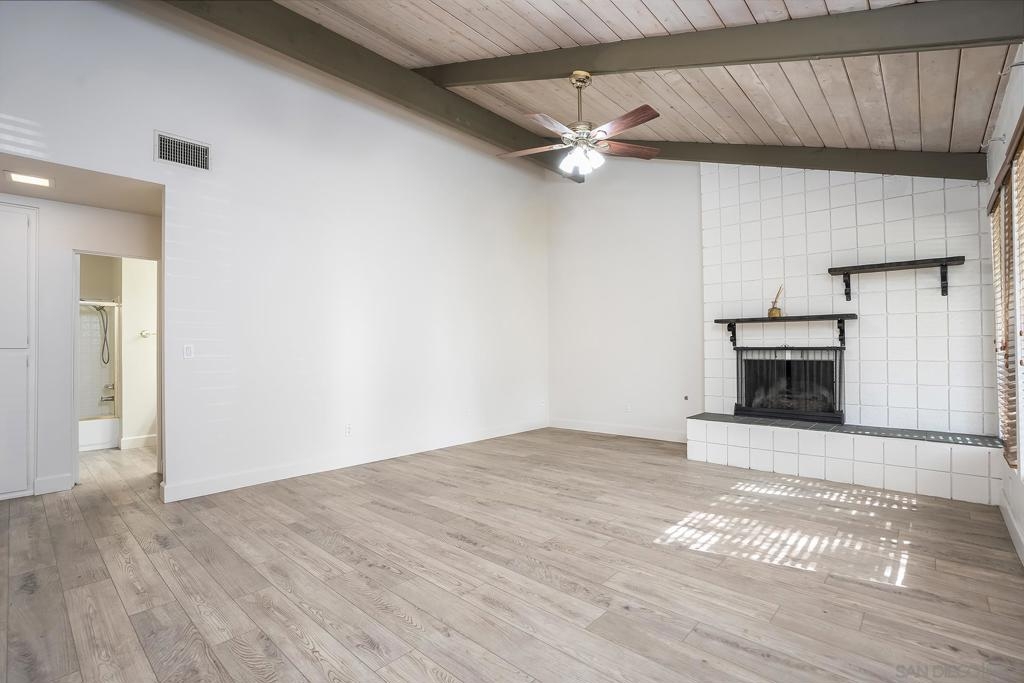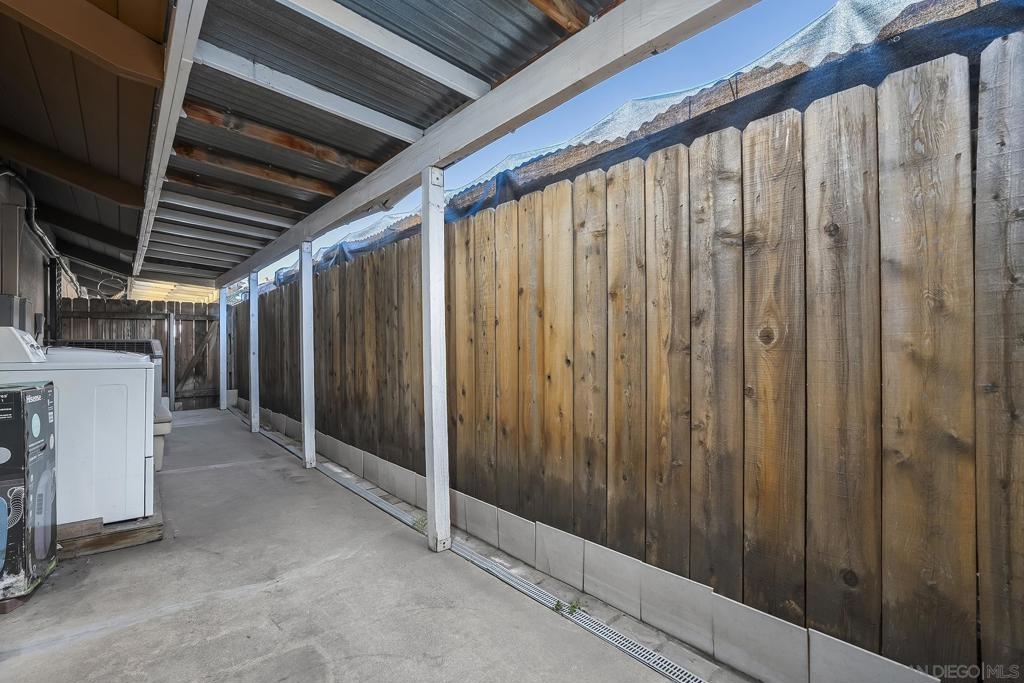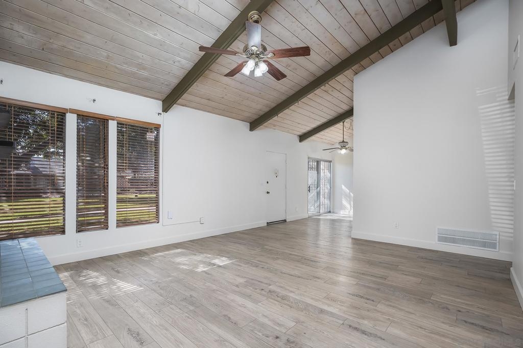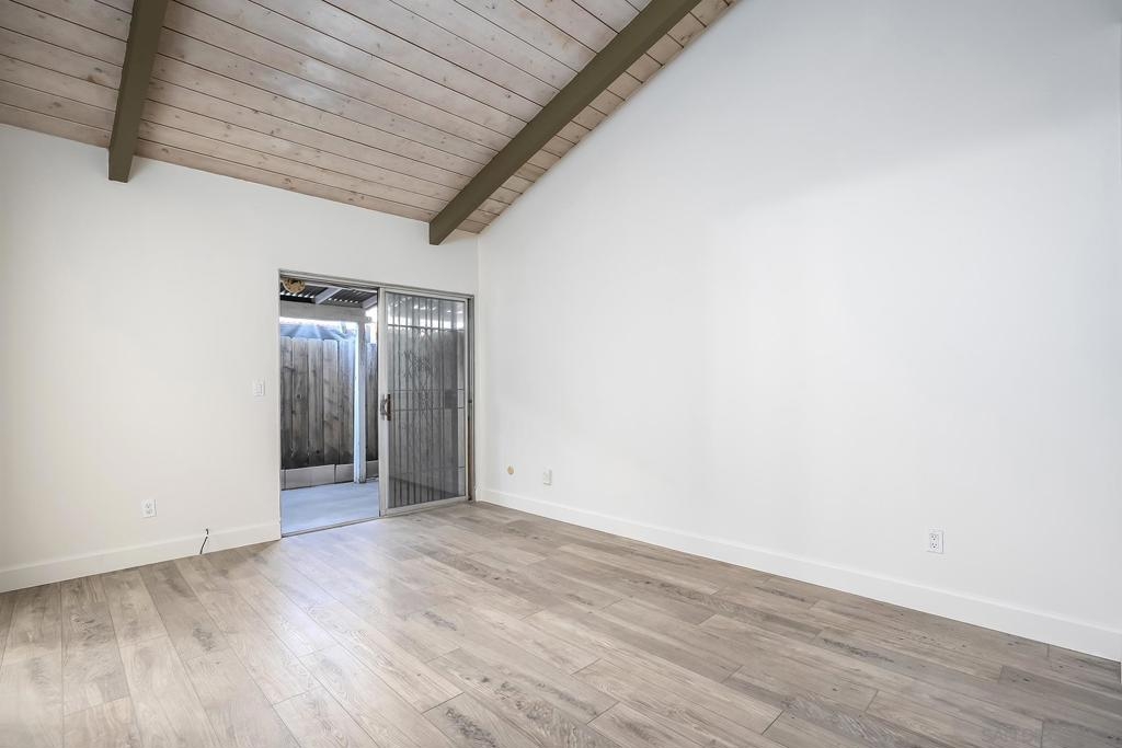 Welcome to 513 Shady Ln Unit B, a charming single-story condo located within a gated community in El Cajon. Tucked away at the end of a quiet cul-de-sac, this 2-bedroom, 2-bath home offers over 1,088 sq. ft. of comfortable, thoughtfully designed living space with added privacy and a peaceful setting. Inside, you’ll find luxury vinyl plank flooring throughout, soaring vaulted ceilings with exposed wood beams, and an abundance of natural light that creates a bright, open feel. The spacious layout seamlessly connects the living, dining, and kitchen areas—ideal for both everyday living and entertaining. Enjoy indoor-outdoor living with two private patio spaces—a welcoming front patio off the dining area and a serene rear patio accessible from the primary suite, perfect for relaxing or unwinding at the end of the day. Additional features include in-unit washer and dryer hookups with both interior and exterior options, generous storage, and an assigned covered carport with built-in shelving for added convenience. Located in a well-maintained gated community, this home offers a perfect blend of comfort, character, and convenience—an excellent opportunity for both homeowners and investors alike.