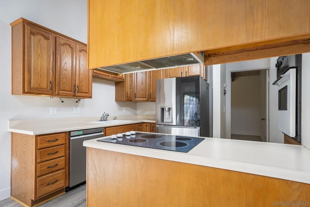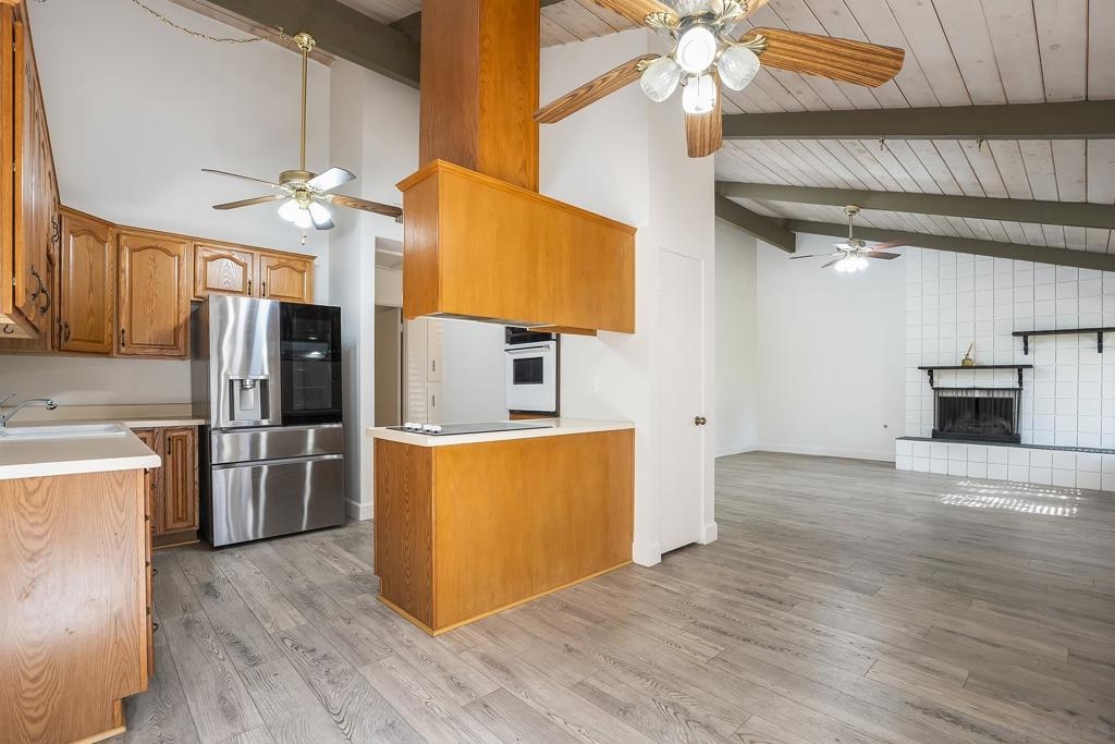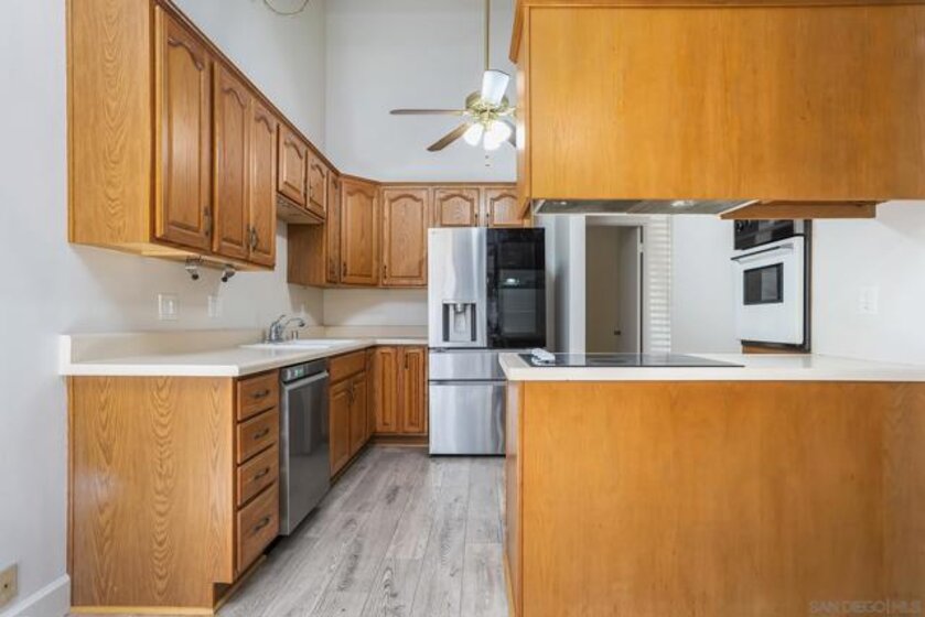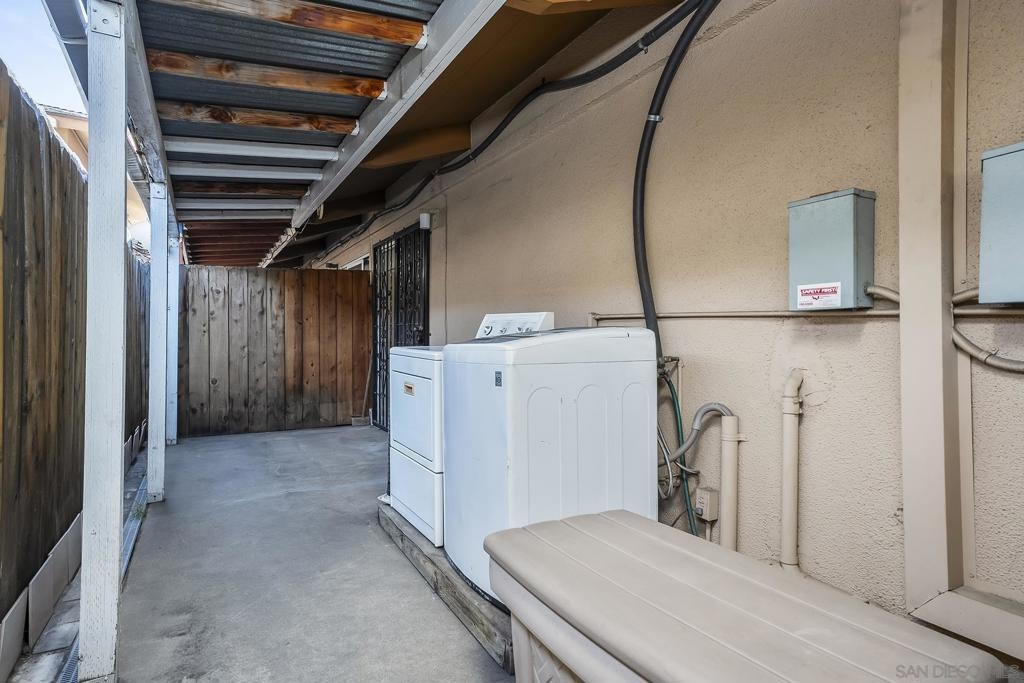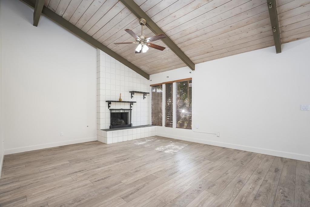 Welcome to 513 Shady Ln Unit B, a charming single-story condo located within a gated community in El Cajon. Tucked away at the end of a quiet cul-de-sac, this 2-bedroom, 2-bath home offers over 1,088 sq. ft. of comfortable, thoughtfully designed living space with added privacy and a peaceful setting. Inside, you’ll find luxury vinyl plank flooring throughout, soaring vaulted ceilings with exposed wood beams, and an abundance of natural light that creates a bright, open feel. The spacious layout seamlessly connects the living, dining, and kitchen areas—ideal for both everyday living and entertaining. Enjoy indoor-outdoor living with two private patio spaces—a welcoming front patio off the dining area and a serene rear patio accessible from the primary suite, perfect for relaxing or unwinding at the end of the day. Additional features include in-unit washer and dryer hookups with both interior and exterior options, generous storage, and an assigned covered carport with built-in shelving for added convenience. Located in a well-maintained gated community, this home offers a perfect blend of comfort, character, and convenience—an excellent opportunity for both homeowners and investors alike.