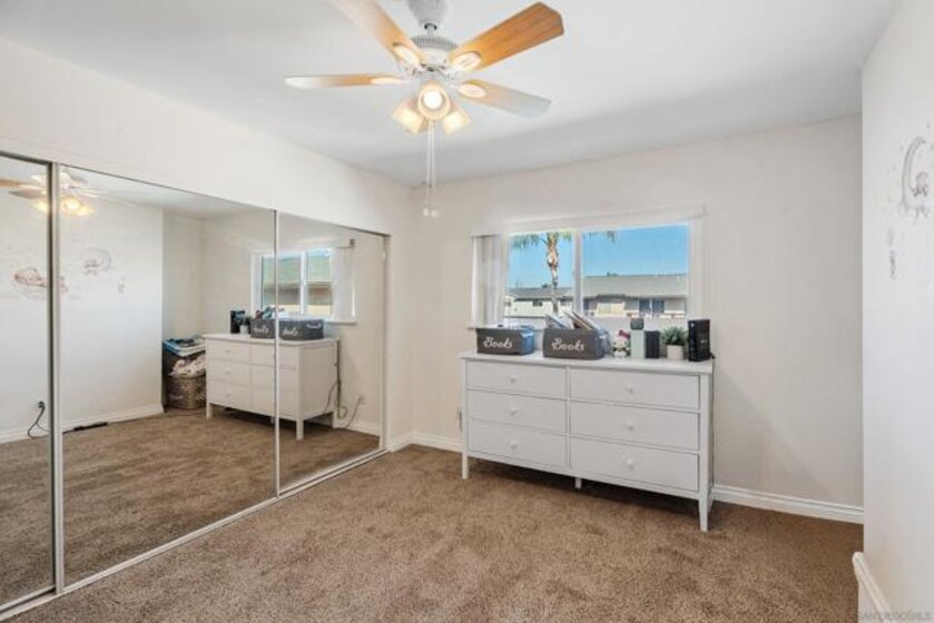 Spacious and light-filled, this second-floor condo offers serene pool and mountain views in the gated Meadowridge community. Freshly painted with re-textured ceilings and new dual-pane windows, the home feels bright and refreshed. The updated kitchen features quartz countertops, white cabinetry with brushed nickel hardware, a new dishwasher, and a stainless steel refrigerator, while the remodeled bathroom adds a modern touch. Enjoy your private balcony with exterior storage. Amenities include the community pool, spa, BBQ area, laundry room and two assigned parking spaces.