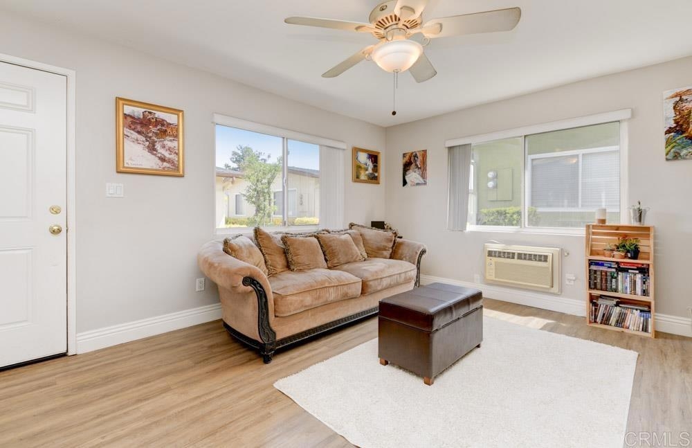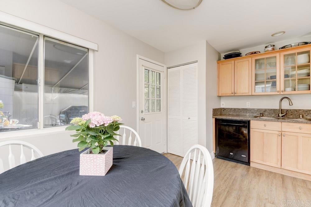 Tastefully integrating a warm atmosphere, prime El Cajon location, quiet community, and modern design, this beautiful Casitas De Anza patio home is one of the area’s finest listings this year, and truly offers San Diego living at its best. It showcases a charming entry and flowing, one-story floor plan that includes durable laminate, wood-like flooring. Premium upgrades are thoughtfully incorporated throughout, and will make you feel relaxed the moment you walk through the door. This home features a spacious and private backyard for pets and/or children, as well as a covered awning for shade when you’re sitting out back reading or entertaining guests. You’ll adore all three rooms and large closets with built-ins for storage, which are versatile for guests, study, home office, or exercise equipment. A dine-in kitchen complete with gorgeous granite countertops lets in an abundance of natural light. The living room is picturesque for entertaining and features an A/C wall unit. The roomy bathroom has storage cupboards/linen closet. The gated complex includes a delightful playground and stunning landscaping. A large tree provides more shade than other units have to keep you cool in the summer, and you only share one wall/fence with one neighbor. HOA dues are moderate and won’t need to increase since water has been submetered, and conservation is up to you--the less you use, the less you pay, and your neighbors don’t affect your water costs! A perfect starter home for families or finisher home for retirees. Easy access to I-8 and downtown El Cajon, where a new performing arts center has recently opened and a weekly farmers market takes place in the square by the library. Parking space located in the alley, and plenty of additional street parking on Anza. You’ll enjoy coming home to this relaxing oasis after some fun in the sun at one of San Diego’s beaches or enchanting entertainment venues. There are legitimately very few opportunities to own a condo as special as this. Don't miss it!