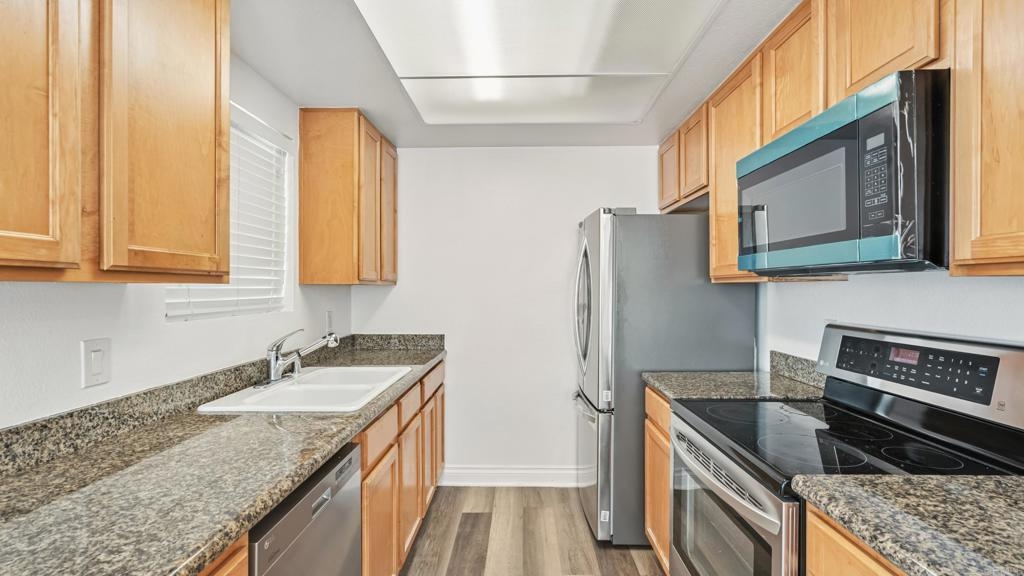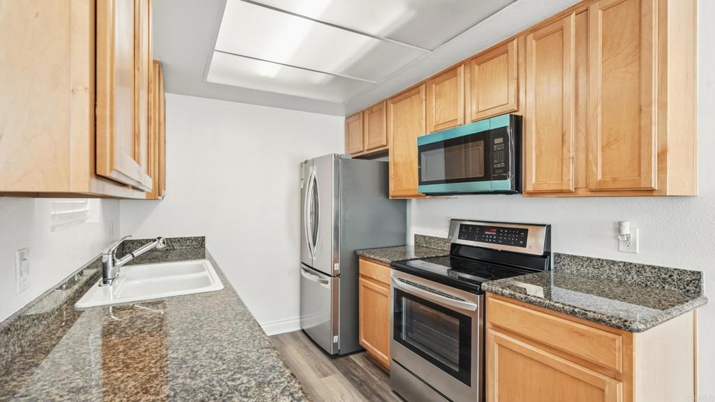 Just checked our list twice: this home is now available at a new price that's definitely nice! Your holiday wish is here and it's !VA Approved! Welcome to your new home in the secure, gated community of Palm Court in El Cajon! This thoughtfully updated 1-bedroom, 1-bath upper-level unit offers the perfect blend of comfort, style, and low-maintenance living with your own private staircase up to the unit! Privacy all the way! Step inside and discover a bright and inviting space featuring tasteful finishes, luxury vinyl plank flooring, and stylish ceiling fans. The cozy living room is perfect for relaxing evenings, complete with a charming fireplace, while the updated kitchen shines with elegant granite counters and new appliances! This home is a true gem, offering a rare HOA permit for an in-unit washer and dryer, making laundry day a breeze. You'll also have an assigned carport parking space. Beyond your front door, the Palm Court community provides a wealth of amenities to enhance your lifestyle. Take a dip in the sparkling pool, unwind in the soothing jacuzzi, or stay active in the fitness center. The complex is fully gated and secure, with lush, pristine landscaping and a convenient community laundry room. Ideally situated, you'll be within walking distance to a variety of restaurants and shopping options, with easy access to freeways for a quick commute.