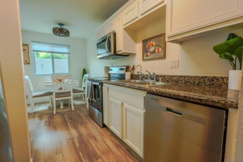 Welcome to this one-of-a-kind, beautifully upgraded condo in the Serenidad community—an ideal opportunity for first-time buyers looking for style, comfort, and simplicity. This beautiful condo features ONE bedroom, ONE bath, walk-in closet, in-unit laundry, and an open space concept. The living room leads out to a private patio and additional storage space. Clean, contemporary finishes and smart updates throughout create a fresh, minimalistic environment—perfect for starting your next chapter. Enjoy the ease of resort-style living with access to a sparkling community pool and inviting outdoor spaces, all set within a peaceful, well-maintained neighborhood. The HOA includes a pool, barbecue area, assigned parking, water, and the security of a gated community. You’ll love the convenience of being just minutes from shopping, dining, and major freeways—making your daily routine effortless. If you’ve been waiting for the right first home, this is the one that checks all the boxes.